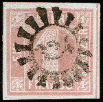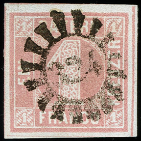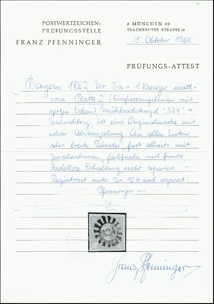 | Zusatzinformationen und Suchstichworte: | 371. Auktion Heinrich Köhler 24.-28. September 2019 Los 8067 Platte 2: 1 Kreuzer rosa, allseits breitrandig, dreiseitig mit voller und oben mit Teil der Zwischenlinie , sauber entwertet durch zentrischen gMR "324" MÜNCHBERG. Ein schönes einwandfreies Stück dieser schwierigen und in einwandfreier Erhaltung sehr seltenen Marke. Signiert Pfenninger mit Attest (1968) Zuschlag 1.300,00 EUR |
