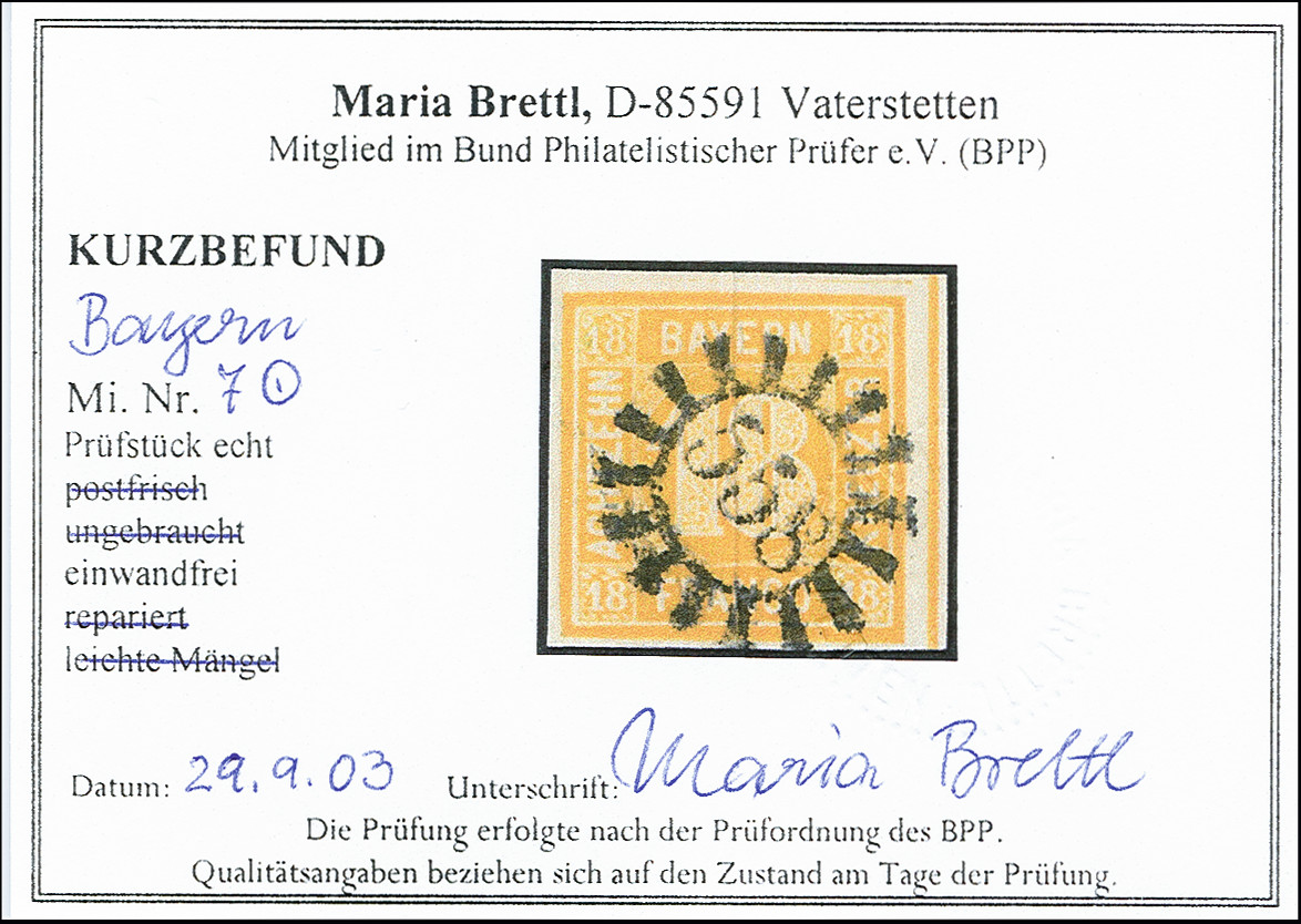 | Prüfer: | Brettl, Maria (BPP (Bund Philatelistischer Prüfer)) |