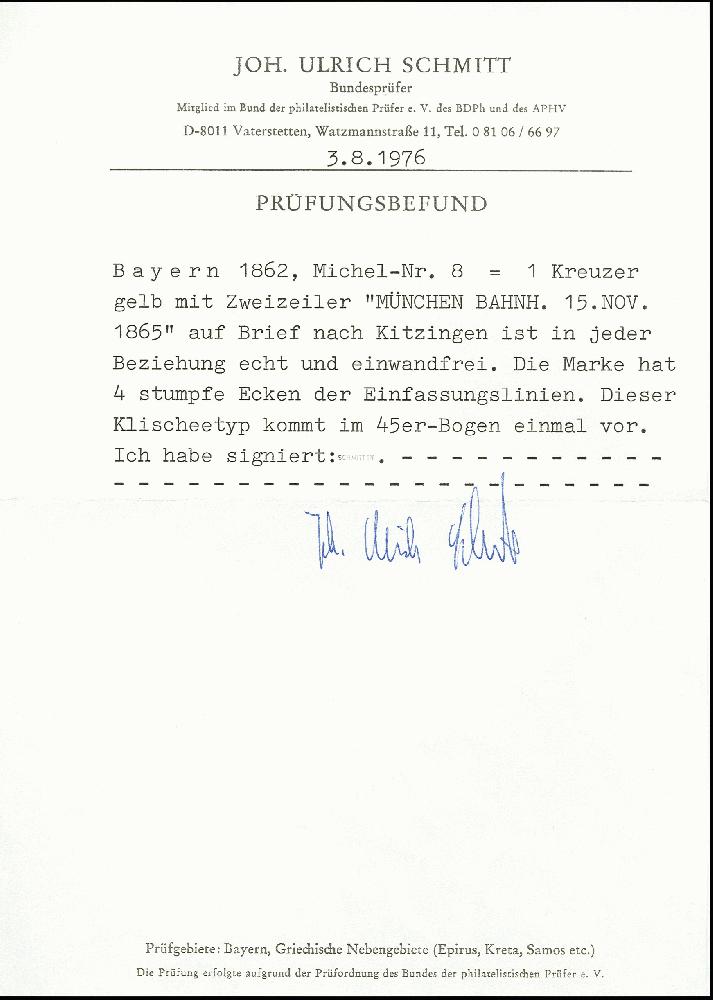 | Prüfer: | Schmitt, Joh. Ulrich (BPP (Bund Philatelistischer Prüfer)) |