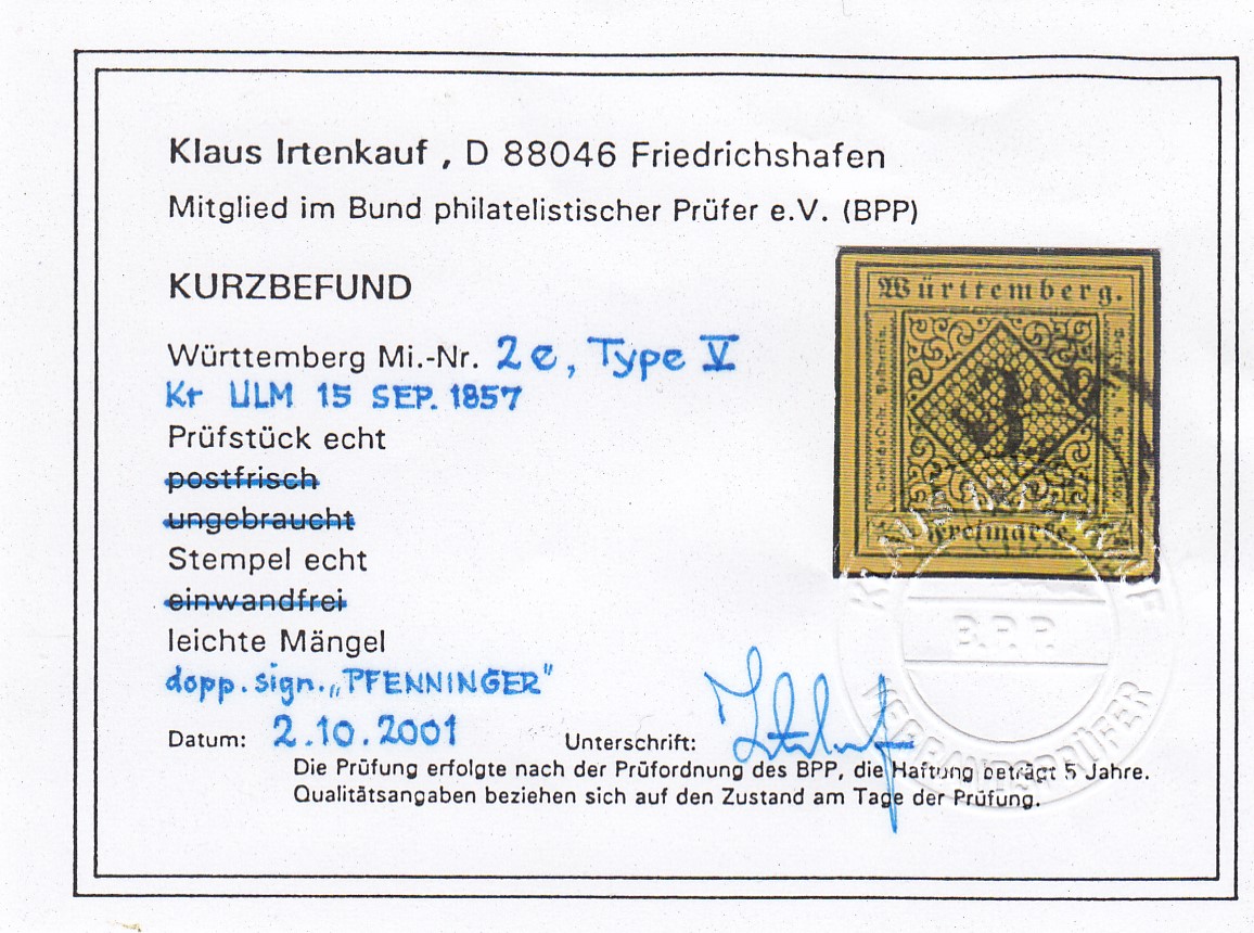 | Prüfer: | Irtenkauf, Klaus (BPP (Bund Philatelistischer Prüfer)) |