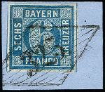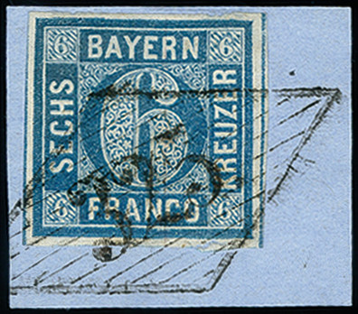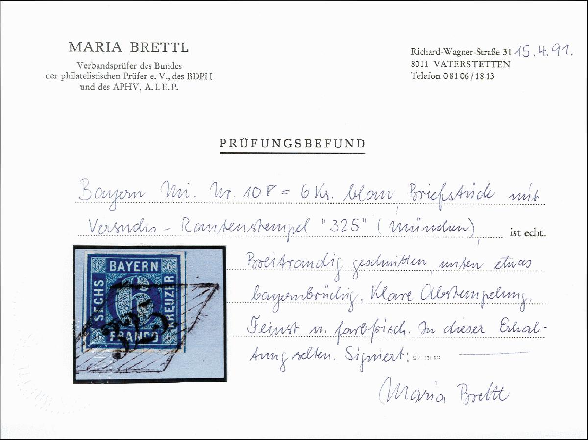 | Zusatzinformationen und Suchstichworte: | 371. Auktion Heinrich Köhler 24.-28. September 2019 Los 8107 6 Kreuzer blau, farbfrisch und allseits breitrandig mit praktisch vollständig aufgesetztem Raute-Versuchsstempel "325" auf Briefstück, Kabinett, signiert Brettl BPP mit Befund Zuschlag 220,00 EUR |