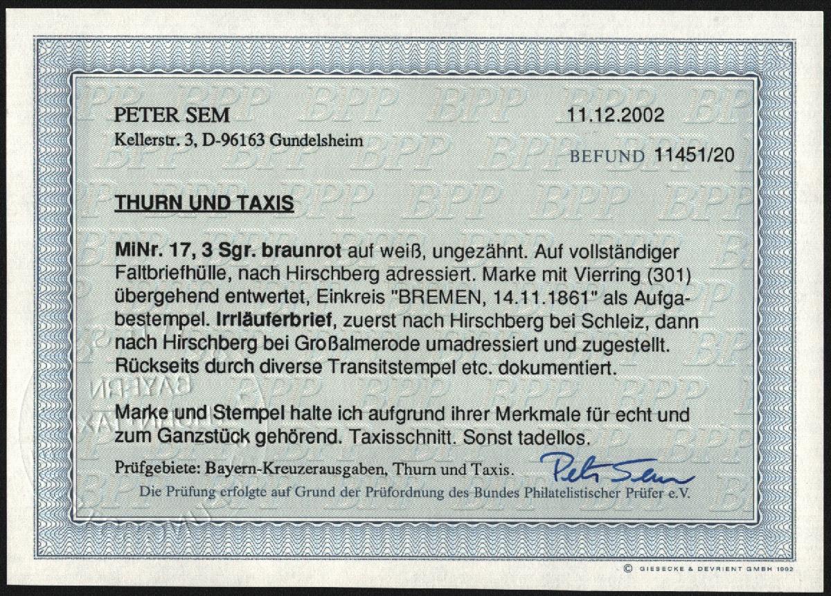 | Prüfgebiet: | Altdeutschland Thurn und Taxis |