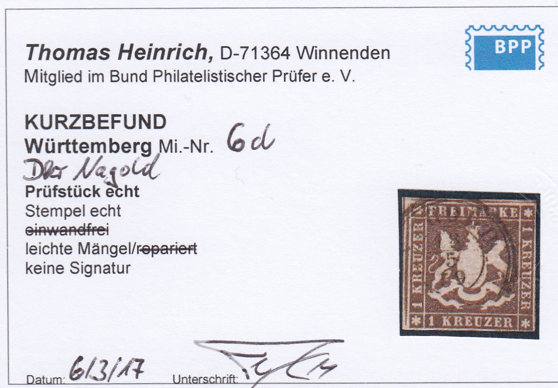 | Prüfer: | Heinrich, Thomas (BPP (Bund Philatelistischer Prüfer)) |