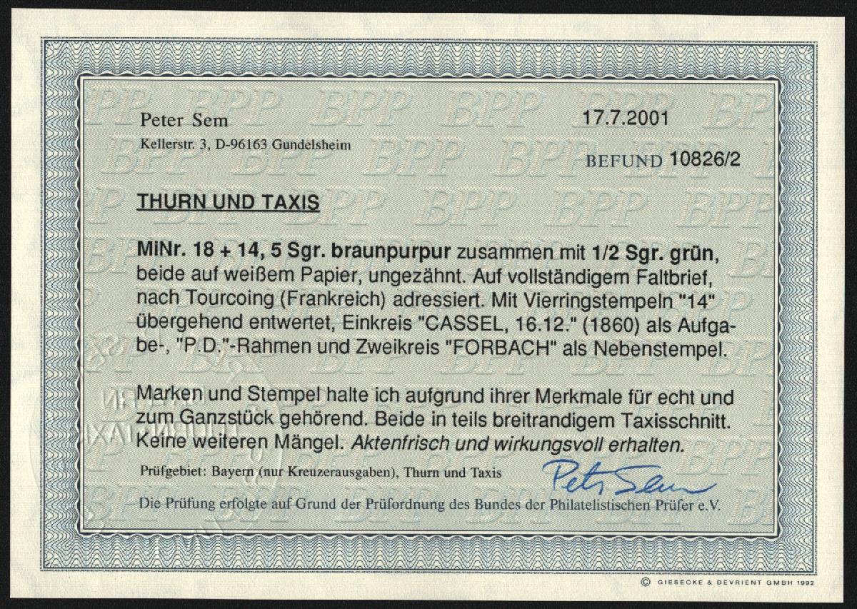 | Prüfgebiet: | Altdeutschland Thurn und Taxis |