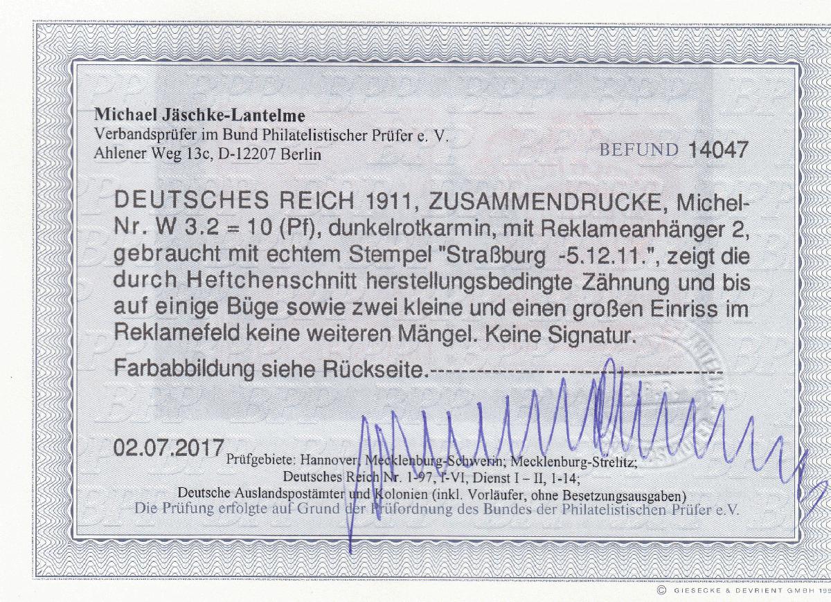 | Prüfgebiet: | Deutsches Reich Markenheftchen u. Zusammendrucke 1900 - 1945 |