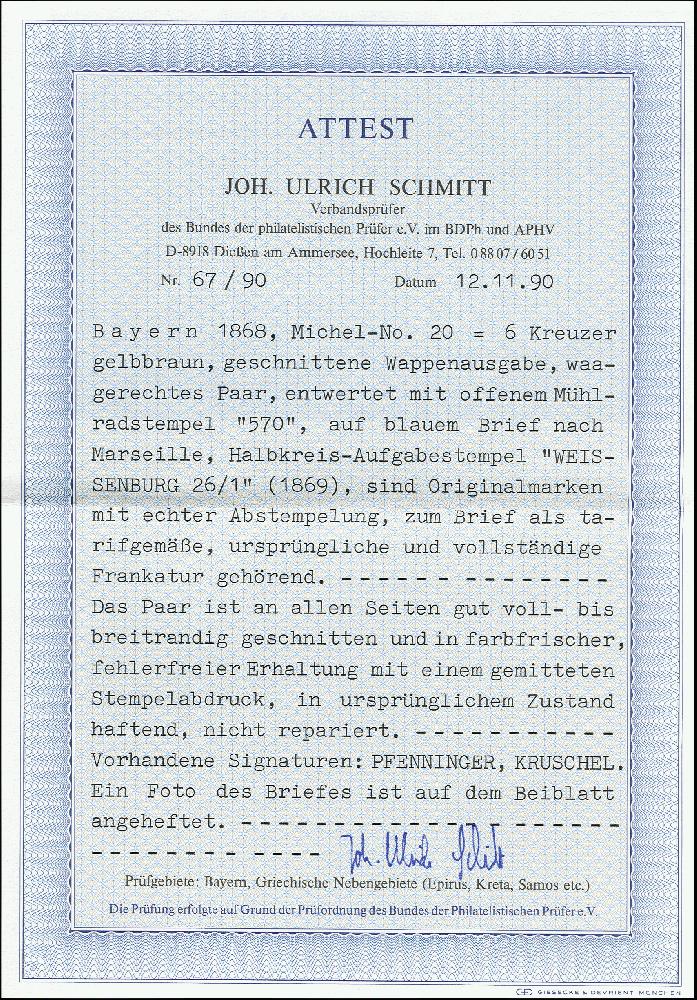 | Prüfer: | Schmitt, Joh. Ulrich (BPP (Bund Philatelistischer Prüfer)) |