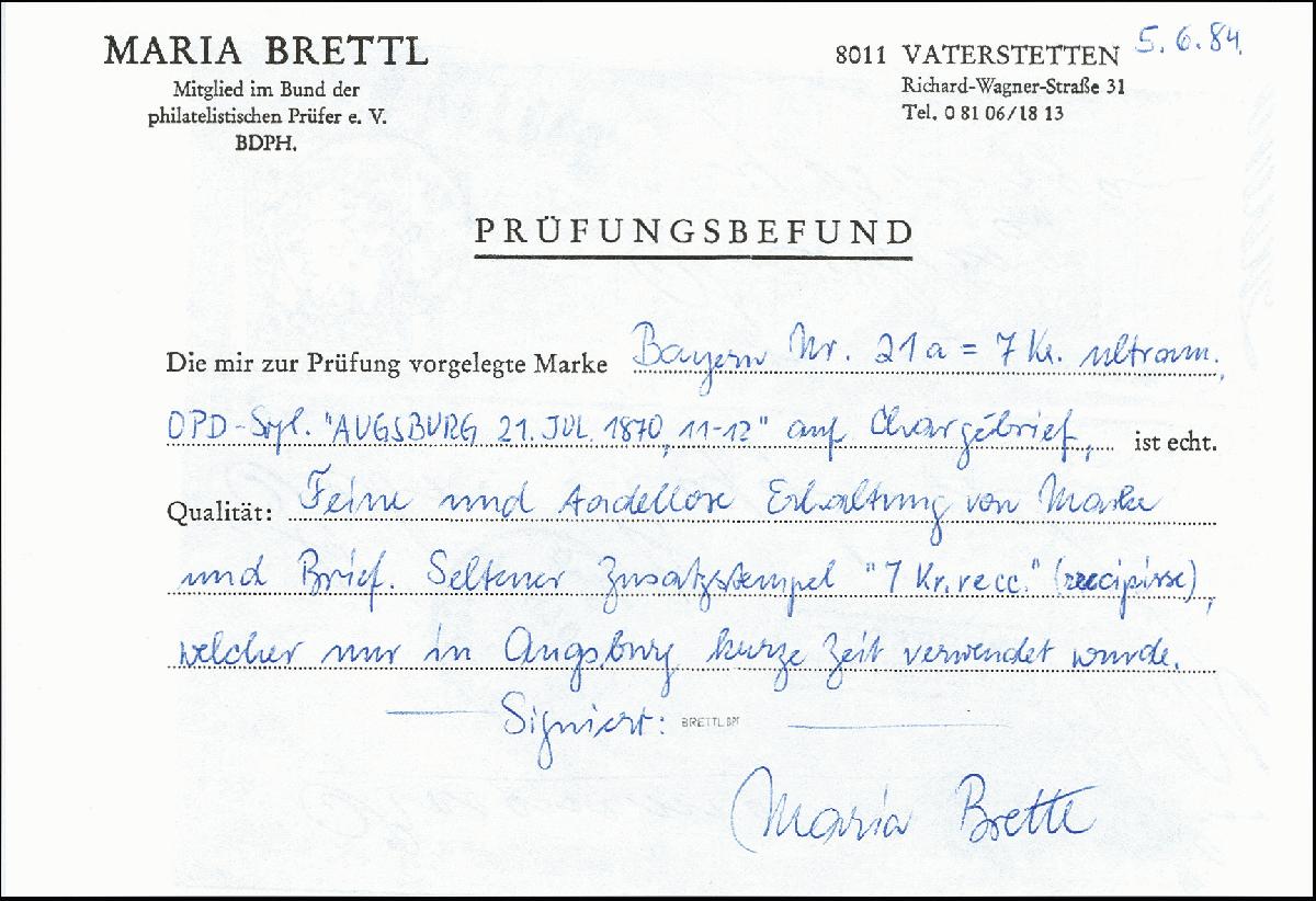 | Prüfer: | Brettl, Maria (BPP (Bund Philatelistischer Prüfer)) |