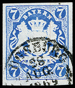 | Zusatzinformationen und Suchstichworte: | 371. Auktion Heinrich Köhler 24.-28. September 2019 Los 8151 7 Kreuzer preußischblau, farbfrisch und breitrandig, sauber entwertet durch DKr. von Augsburg, Kabinett, signiert Brettl BPP und Fotoattest Stegmüller BPP (2019) Zuschlag 300,00 EUR |