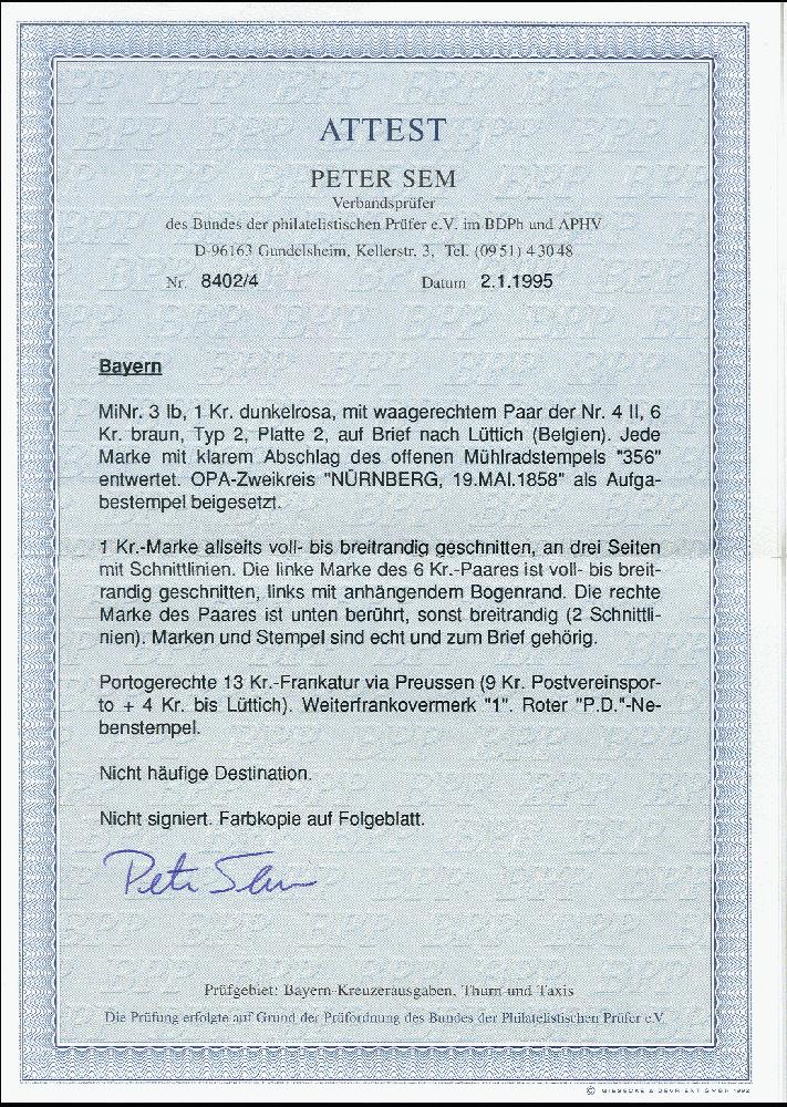 | Prüfer: | Sem, Peter (BPP (Bund Philatelistischer Prüfer)) |