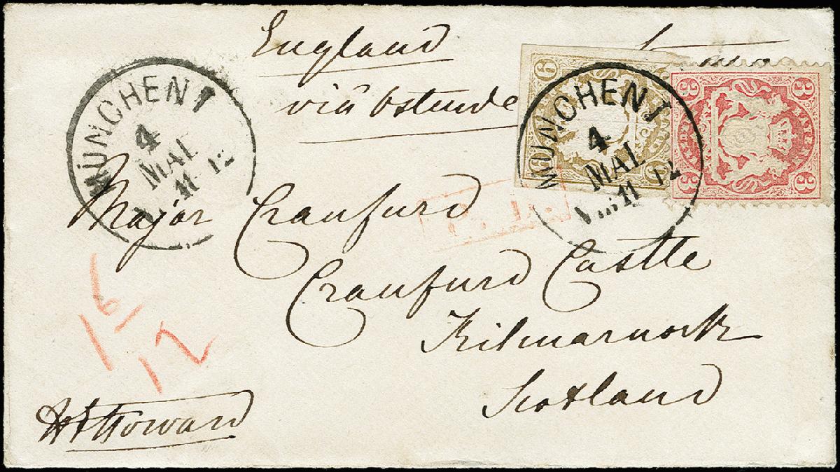 | Zusatzinformationen und Suchstichworte: | 371. Auktion Heinrich Köhler 24.-28. September 2019 Los 8177 9 Kreuzer ockerbraun, allseits breitrandig in Mischfrankatur mit gezähnter Ausgabe 3 Kreuzer karmin, mit sauber auf- und nebengesetztem EKr. "MÜNCHEN 4 MAI" (1871) auf kleinem Briefkuvert nach Kilmarnock in Schottland, Kabinett, signiert Brettl BPP mit Befund Zuschlag 440,00 EUR |