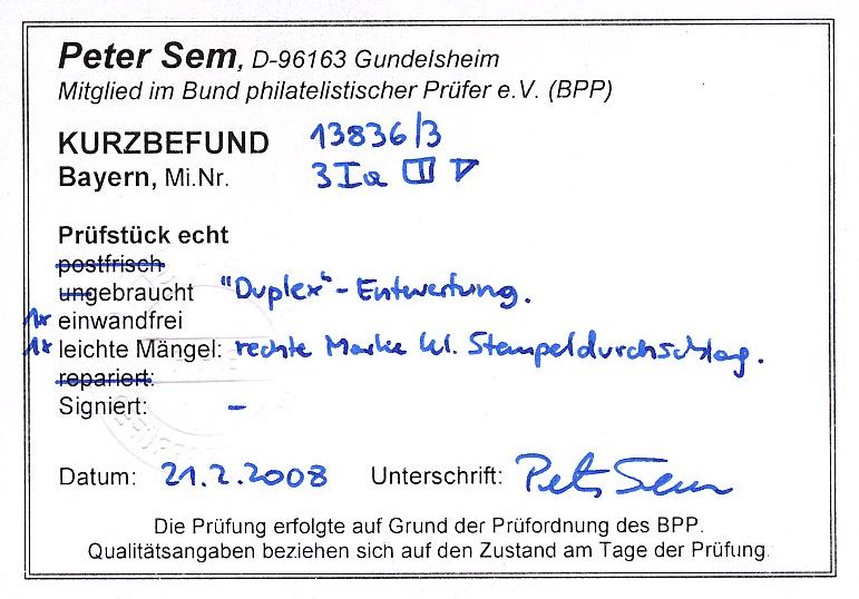 | Prüfer: | Sem, Peter (BPP (Bund Philatelistischer Prüfer)) |
