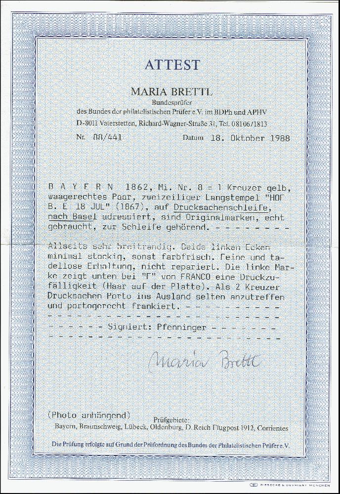 | Prüfer: | Brettl, Maria (BPP (Bund Philatelistischer Prüfer)) |