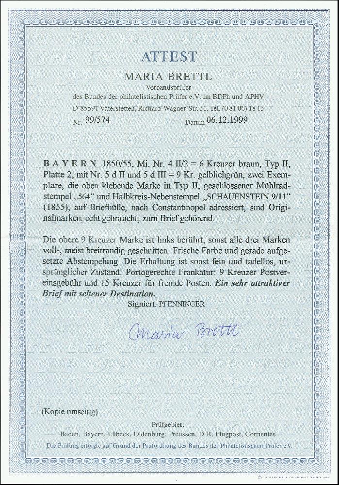 | Prüfer: | Brettl, Maria (BPP (Bund Philatelistischer Prüfer)) |