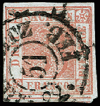| Zusatzinformationen und Suchstichworte: | 371. Auktion Heinrich Köhler 24.-28. September 2019 Los 8509 3 Pfennige lebhaftrot, Platte III, Type 5, gut voll- bis überrandig und in schöner frischer markanter Farbe, sauber entwertet durch Doppelkreisstempel "CHEMNITZ 22. FEB. 51". Ein schönes Stück in tadelloser Erhaltung, signiert Drahn und Fotoattest Vaatz BPP (2018) Zuschlag 2.800,00 EUR |