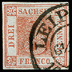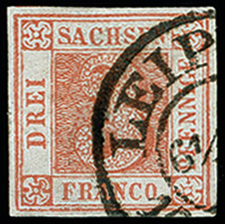| Zusatzinformationen und Suchstichworte: | 371. Auktion Heinrich Köhler 24.-28. September 2019 Los 8512 3 Pfennige lebhaftrot, Platte III, Type 16, ungewöhnlich tiefe dunkle Farbe und allseits breitrandig, sauber entwertet durch Doppelkreisstempel von Leipzig; bis auf einen kleinen rückseitigen Papierspalt und eine minimale Aufrauhung einwandfrei. Signiert Drahn und Fotoattest Vaatz BPP (2019) Zuschlag 1.800,00 EUR |