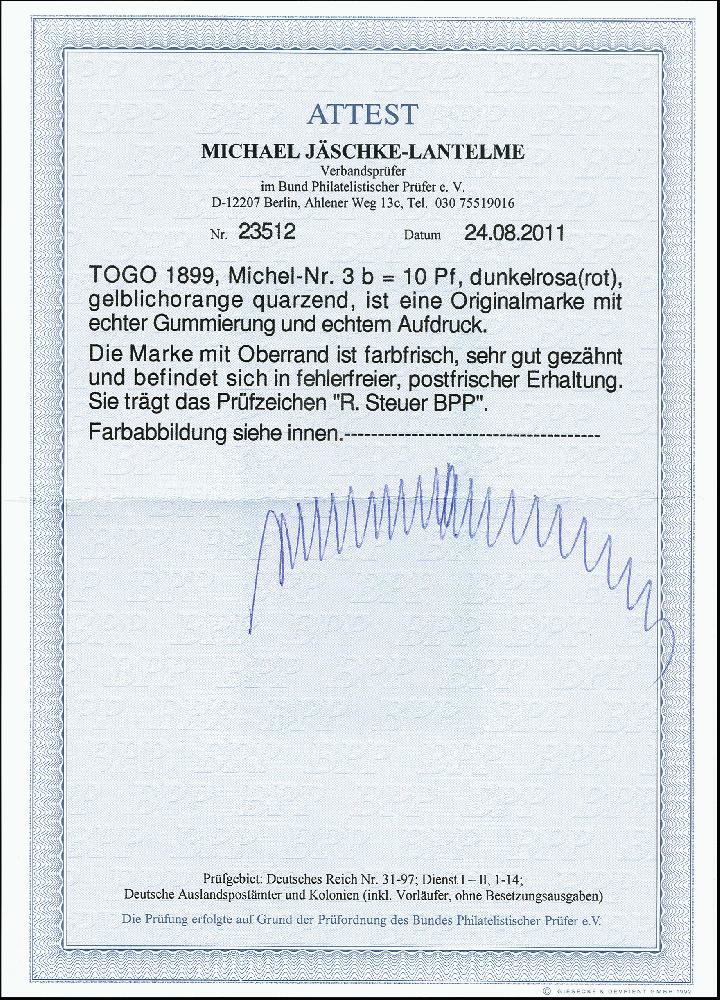 | Prüfer: | Jäschke-Lantelme, Michael (BPP (Bund Philatelistischer Prüfer)) |