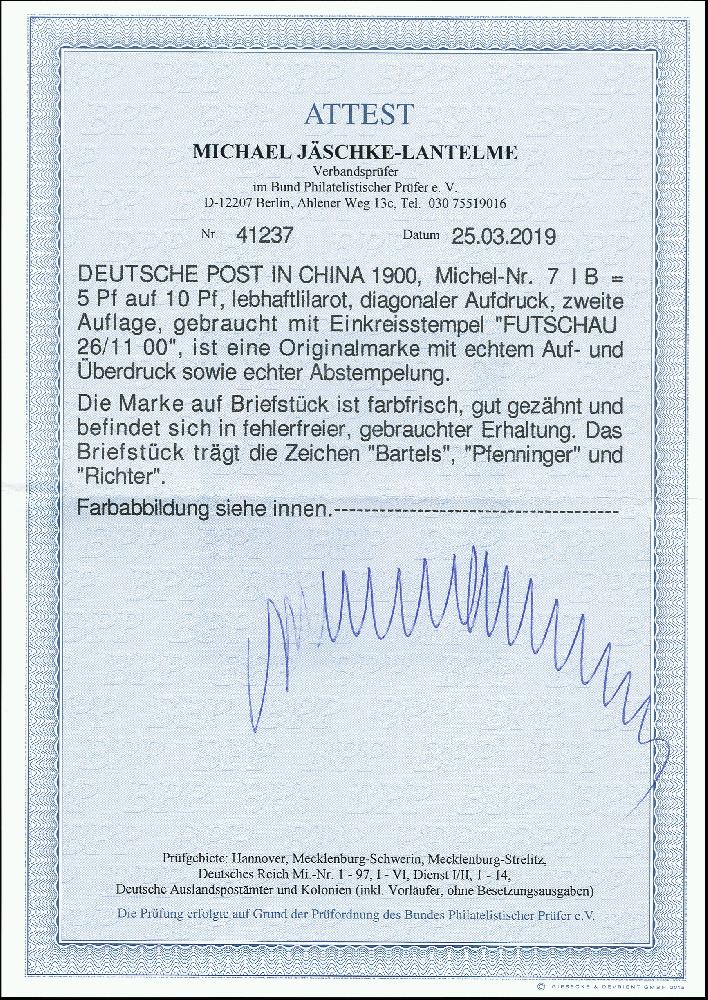 | Prüfgebiet: | Deutsche Auslandspostämter China |