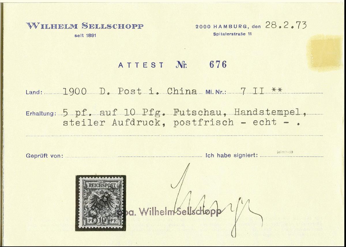 | Prüfgebiet: | Deutsche Auslandspostämter China |