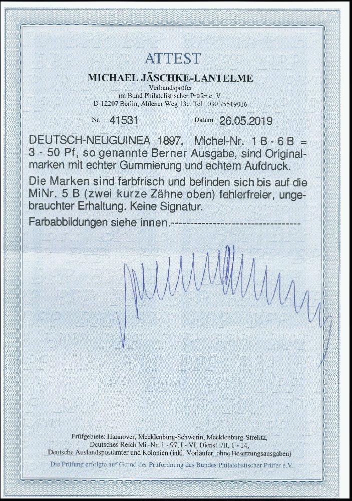 | Prüfer: | Jäschke-Lantelme, Michael (BPP (Bund Philatelistischer Prüfer)) |