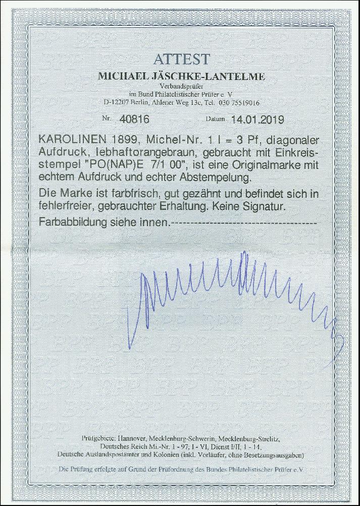 | Prüfgebiet: | Deutsche Kolonien Karolinen |