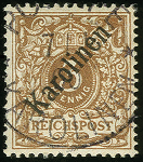 | Zusatzinformationen und Suchstichworte: | 371. Auktion Heinrich Köhler 24.-28. September 2019 Los 1737 1913, Kaiseryacht 5 M. mit Wasserzeichen, 26:17 Zähnungslöcher, mit Stempel "DUALA 27.4.14", minimal Schürfstelle vorderseitig und rechts mit verkürztem Zahn, sonst einwandfrei, seltene Marke, Fotoattest Jäschke-L. BPP (2019) (Mi. 4.800,-) Ausruf 700,00 EUR |