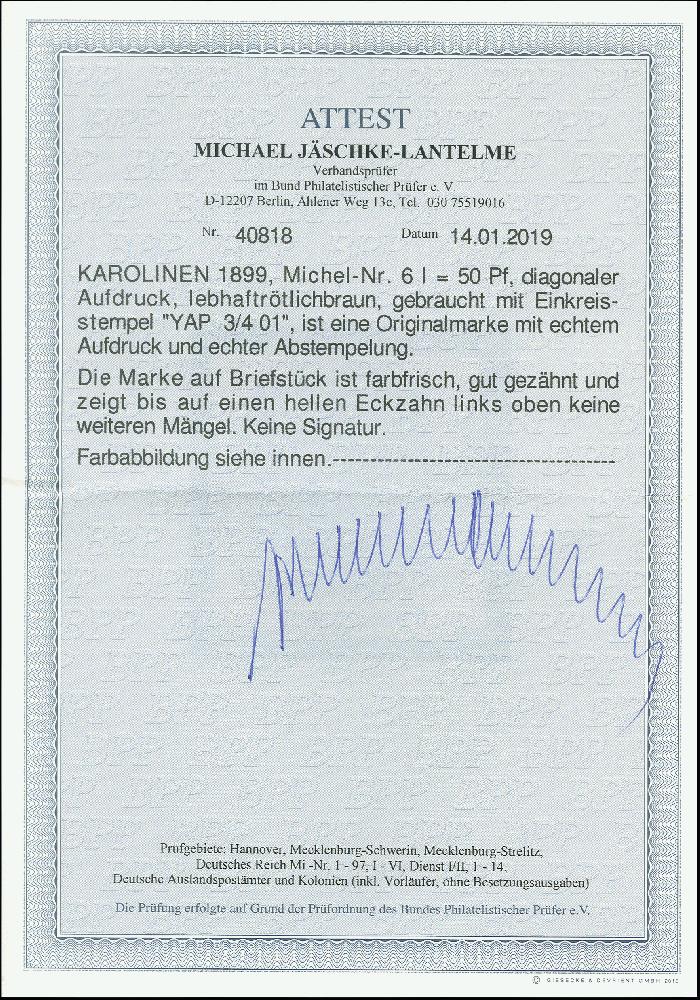 | Prüfgebiet: | Deutsche Kolonien Karolinen |