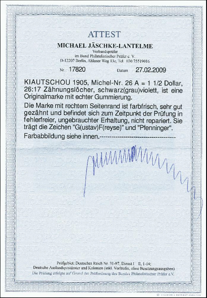 | Prüfer: | Jäschke-Lantelme, Michael (BPP (Bund Philatelistischer Prüfer)) |