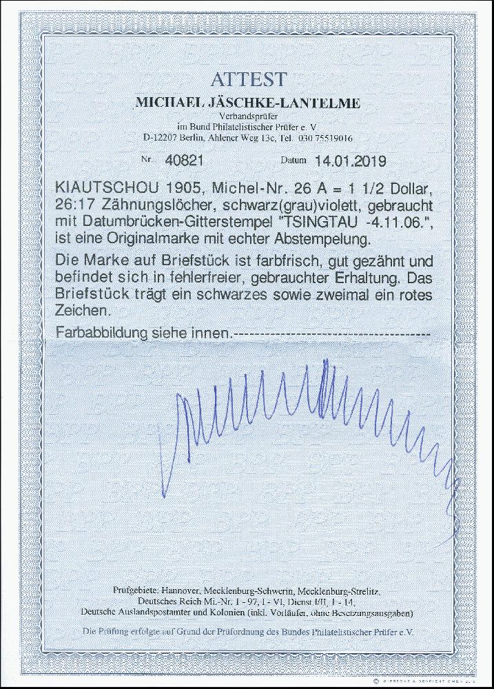 | Prüfer: | Jäschke-Lantelme, Michael (BPP (Bund Philatelistischer Prüfer)) |