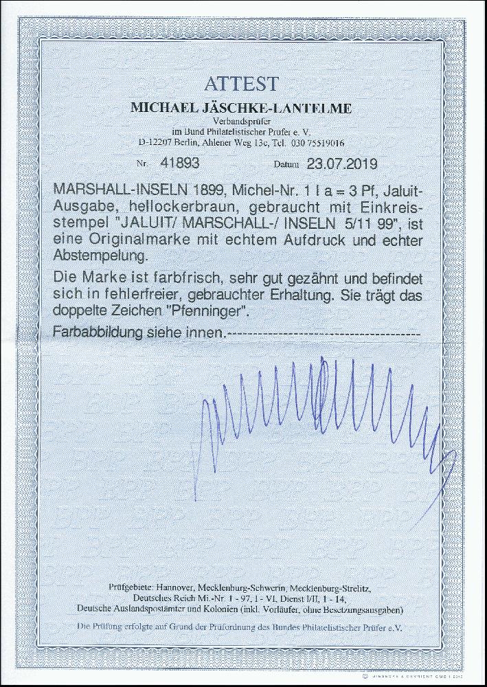 | Prüfgebiet: | Deutsche Kolonien Marshall-Inseln |