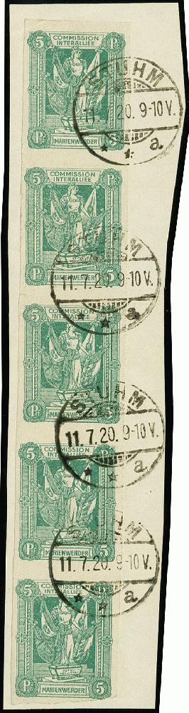 | Zusatzinformationen und Suchstichworte: | 371. Auktion Heinrich Köhler 24.-28. September 2019 Los 1814 1920, 1. Sarg-Ausgabe 5 Pfg. ungezähnt im senkrechten 5er-Streifen mit zeitgerechtem Stempel "STUHM 11.7.20" auf Briefstück; die untere marke etwas berührt und mittlere Marke mit vor dem Aufkleben vorhandene Bugspur; eine seltene Einheit, Fotoattest Bock BPP (2018) Zuschlag 340,00 EUR |