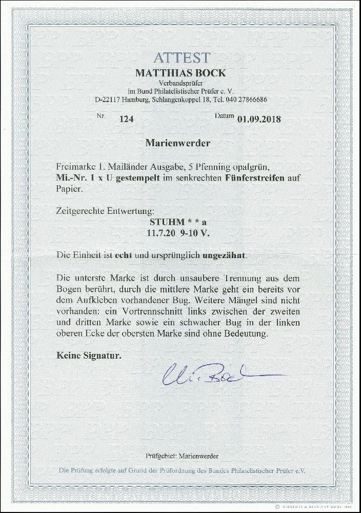 | Prüfer: | Bock, Matthias (BPP (Bund Philatelistischer Prüfer)) |