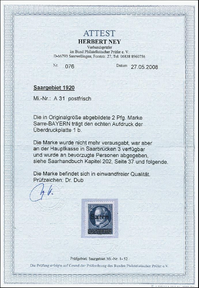 | Prüfgebiet: | Saargebiet (Mi-Nr. 1 - 205) |