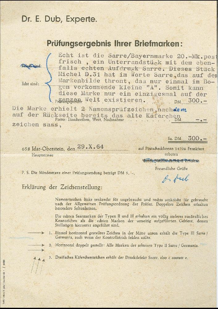 | Prüfgebiet: | Saargebiet (Mi-Nr. 1 - 205) |