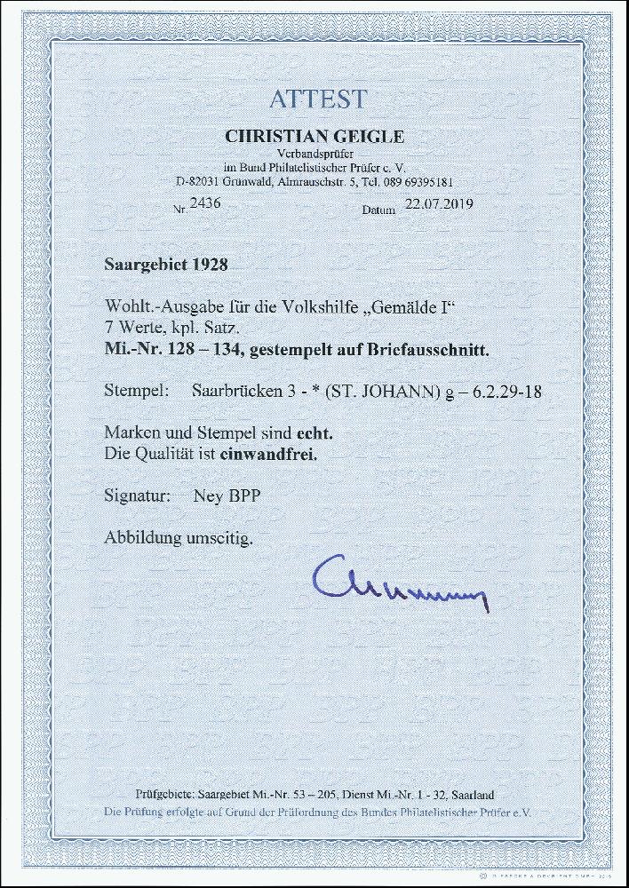 | Zusatzinformationen und Suchstichworte: | 371. Auktion Heinrich Köhler 24.-28. September 2019 Los 1823 1928, Volkshilfe 40 C.-10 Fr. kpl. mit Stempel "Saarbrücken 3 (ST. JOHANN) g 6.2.29" auf Briefstück, Pracht, sign. Ney BPP und Fotoattest Geigle BPP (2019) (Mi. 5.500,-) Zuschlag 1.100,00 EUR |