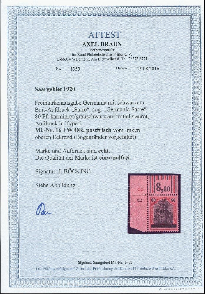 | Prüfer: | Braun, Axel (BPP (Bund Philatelistischer Prüfer)) |
