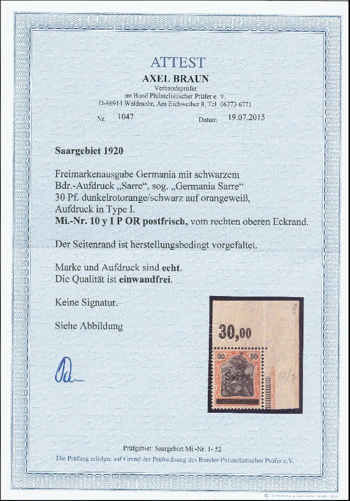 | Prüfer: | Braun, Axel (BPP (Bund Philatelistischer Prüfer)) |