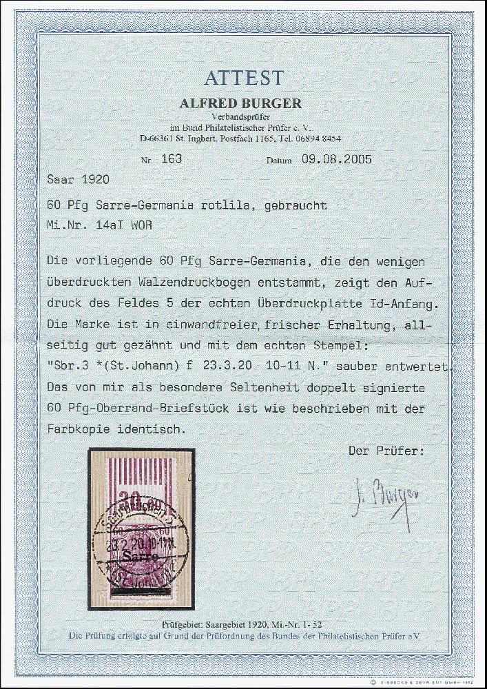 | Prüfer: | Burger, Alfred (BPP (Bund Philatelistischer Prüfer)) |
