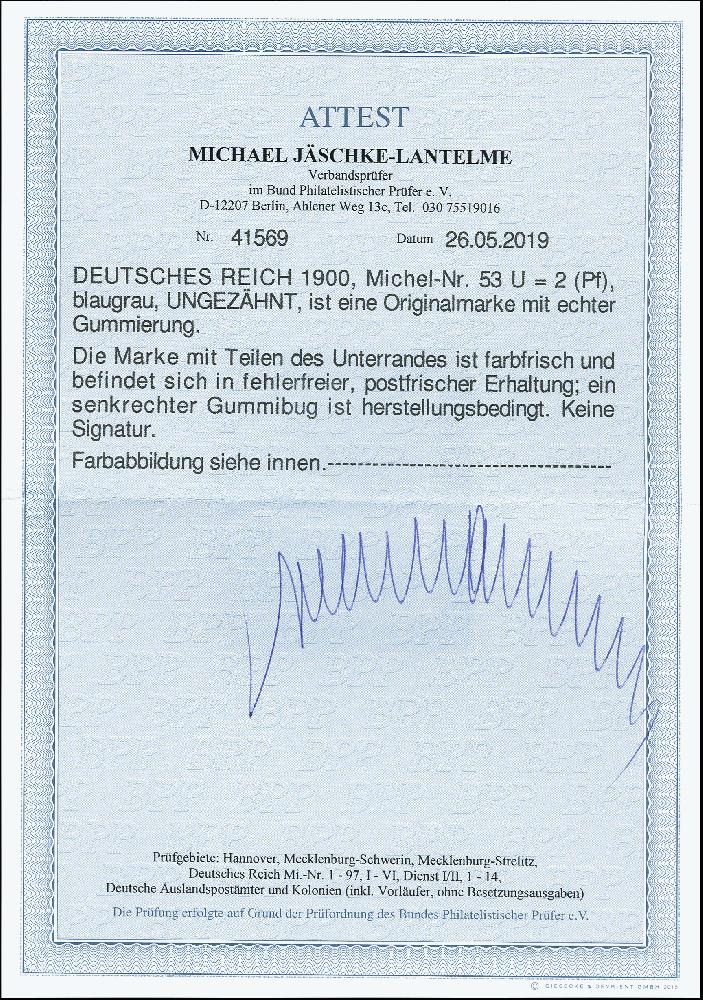 | Prüfer: | Jäschke-Lantelme, Michael (BPP (Bund Philatelistischer Prüfer)) |