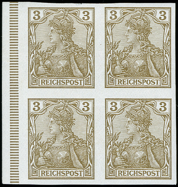 | Zusatzinformationen und Suchstichworte: | 371. Auktion Heinrich Köhler 24.-28. September 2019 Los 7008 3 Pfennig dunkelockerbraun ungezähnt im Rand-Viererblock, die beiden oberen Marken sind sauber ungebraucht mit minimaler heller Stelle außerhalb des Markenbildes über der linken oberen Marke, die beiden unteren Marken sind tadellos postfrisch, sehr seltene Einheit, unsigniert mit Fotoattest Jäschke-L. BPP (2019) (Mi. 5.000,- +) Ausruf 1.250,00 EUR |