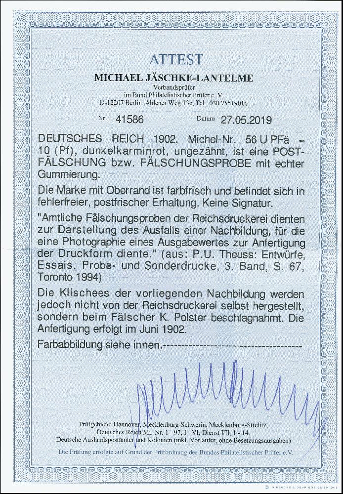 | Prüfgebiet: | Deutsches Reich 1871 - 1918 (Mi-Nr. 1 - 106) |