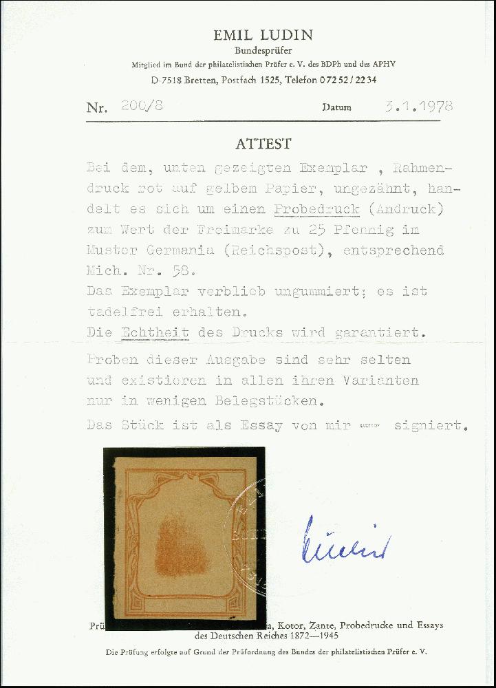 | Prüfgebiet: | Deutsches Reich Specimen, Probedrucke, Essay, Maschinenprobe |