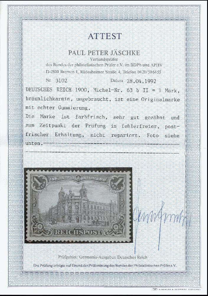 | Prüfer: | Jäschke, Paul Peter (BPP (Bund Philatelistischer Prüfer)) |