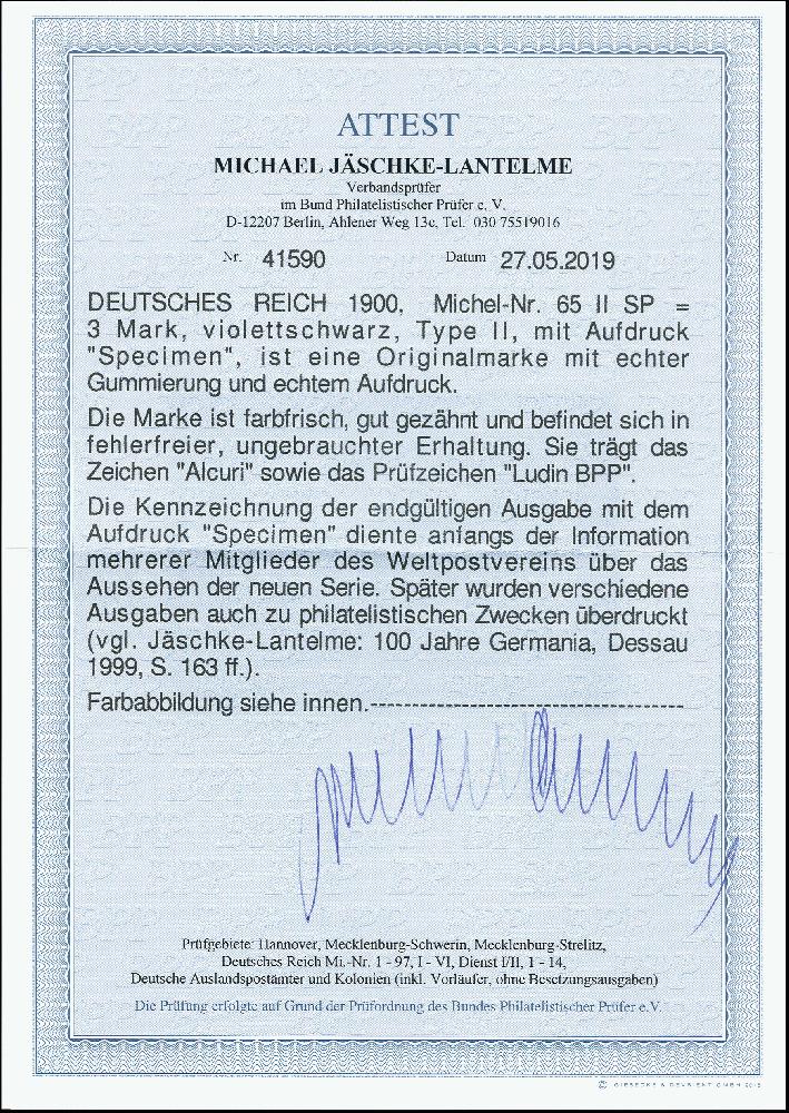 | Prüfgebiet: | Deutsches Reich Specimen, Probedrucke, Essay, Maschinenprobe |