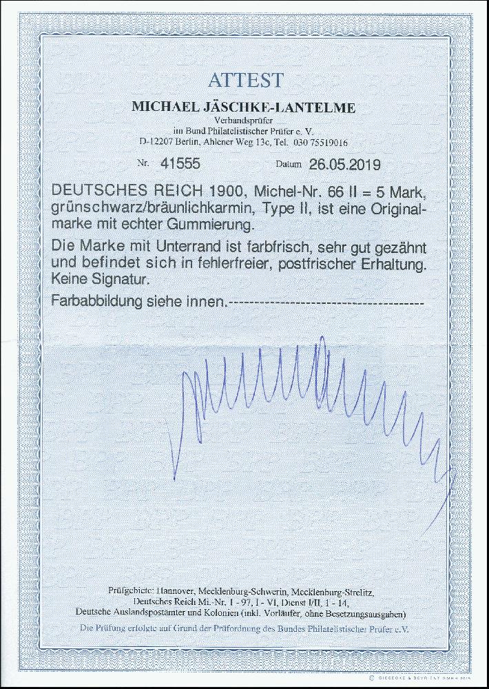 | Prüfer: | Jäschke-Lantelme, Michael (BPP (Bund Philatelistischer Prüfer)) |