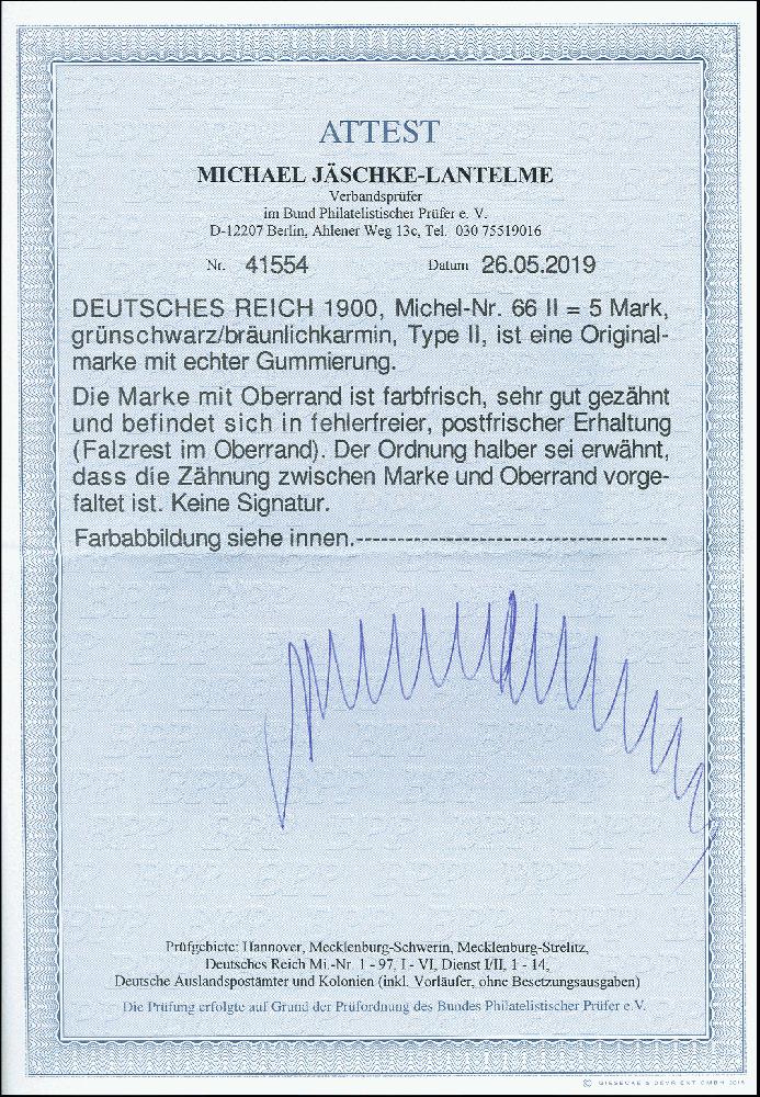 | Prüfer: | Jäschke-Lantelme, Michael (BPP (Bund Philatelistischer Prüfer)) |
