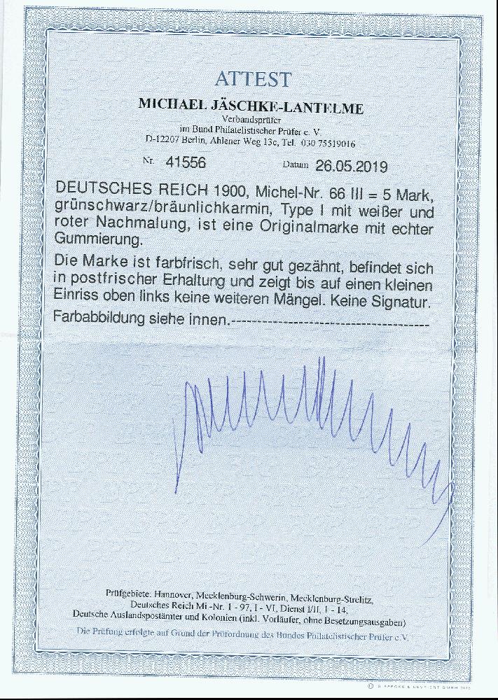 | Prüfgebiet: | Deutsches Reich 1871 - 1918 (Mi-Nr. 1 - 106) |