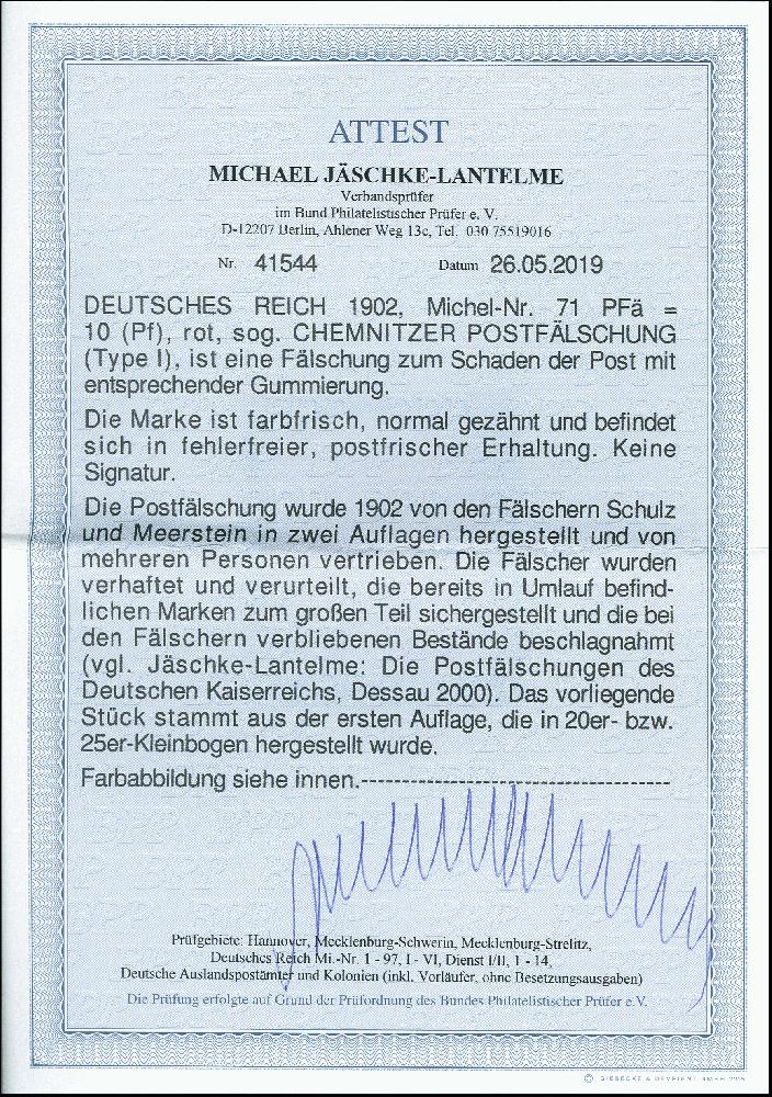 | Prüfer: | Jäschke-Lantelme, Michael (BPP (Bund Philatelistischer Prüfer)) |
