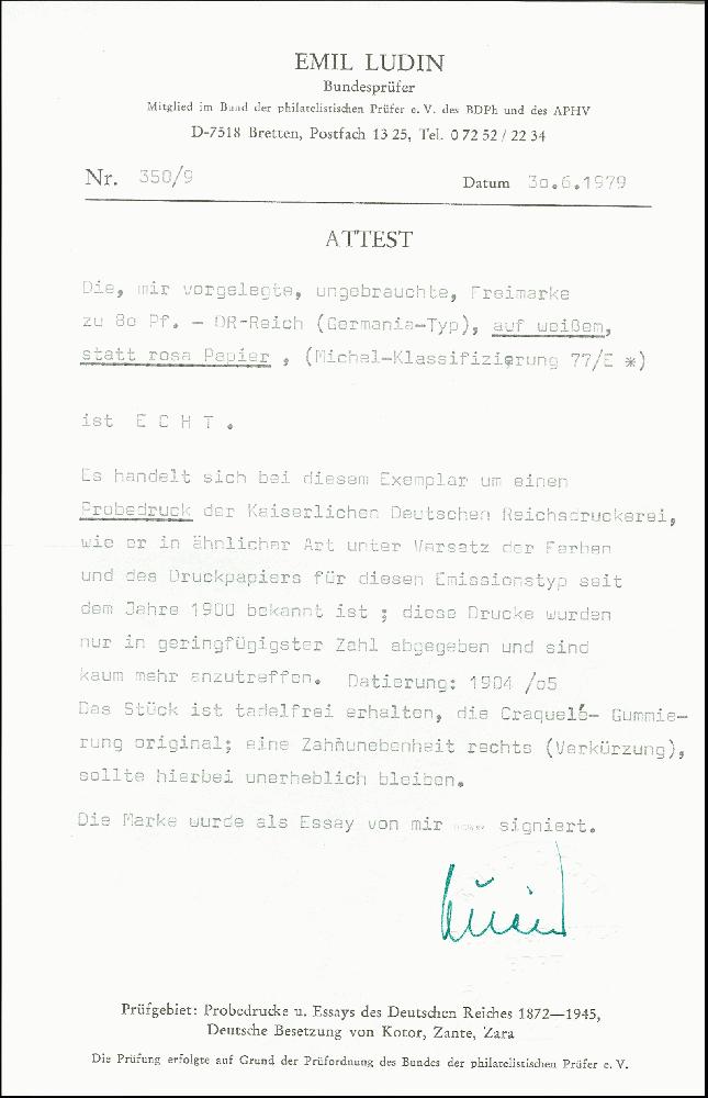 | Prüfgebiet: | Deutsches Reich Specimen, Probedrucke, Essay, Maschinenprobe |
