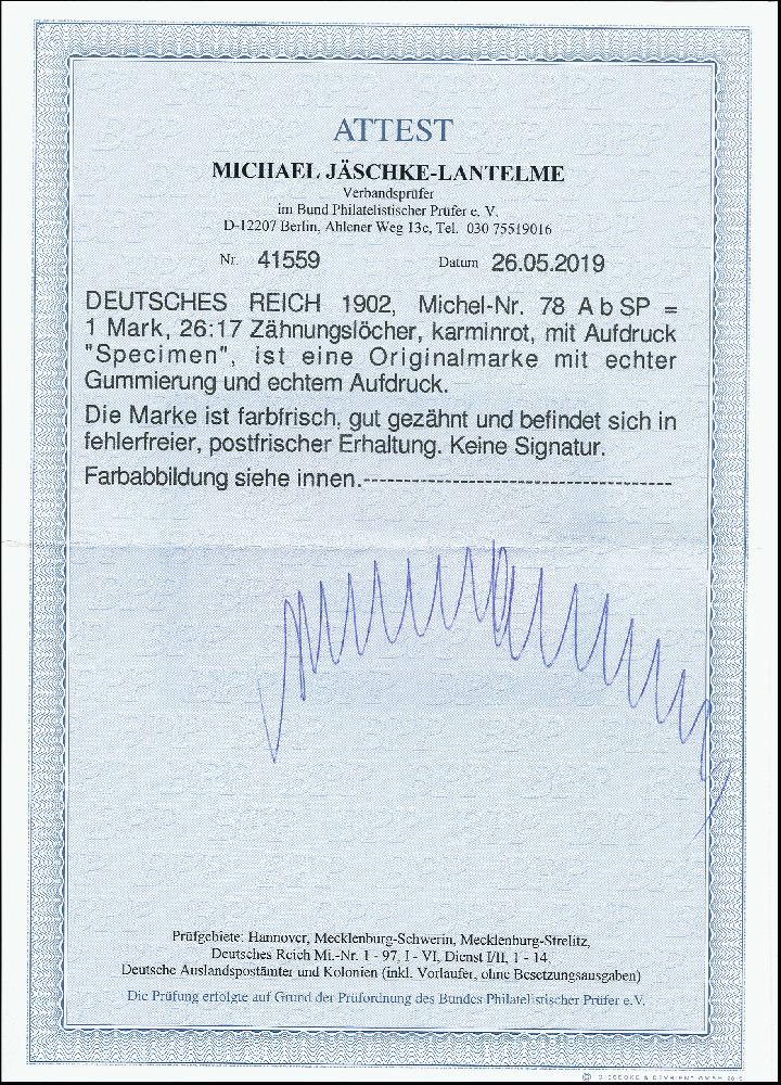 | Prüfer: | Jäschke-Lantelme, Michael (BPP (Bund Philatelistischer Prüfer)) |