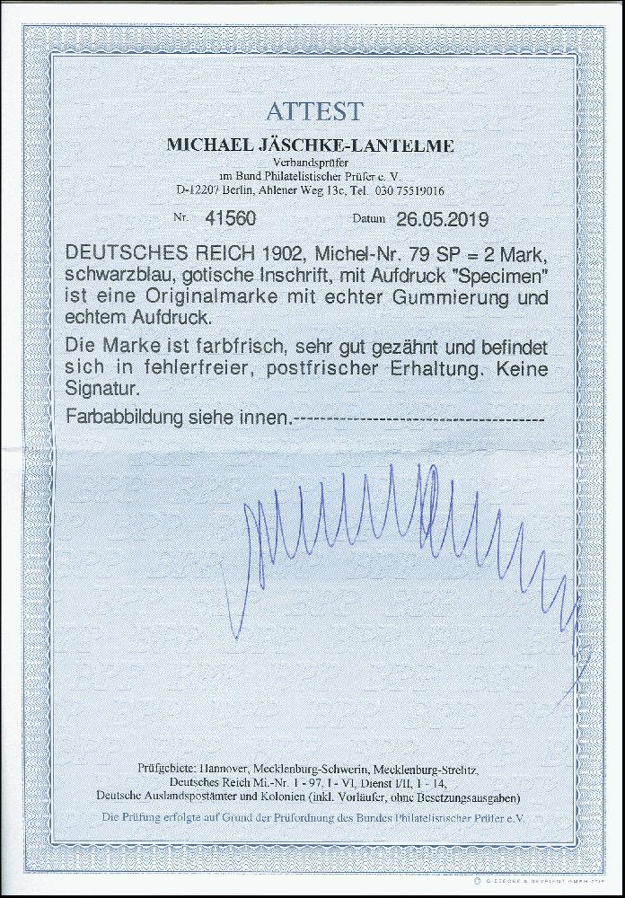 | Prüfgebiet: | Deutsches Reich Specimen, Probedrucke, Essay, Maschinenprobe |